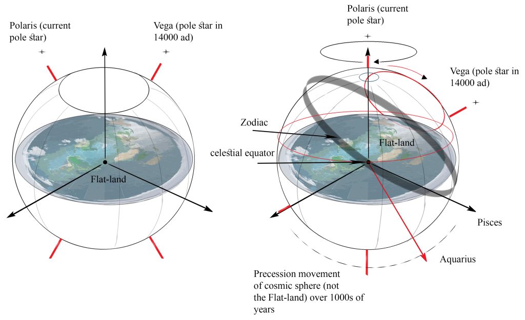In antiquity, it was believed that the Earth was fixed and immovable at the centre of the universe, with everything else—such as the zodiac and celestial equator—revolving around it. What we now understand as the rotation of the Earth’s axis was once imagined as the entire cosmic sphere rotating around the Earth once a day. This sphere rotated around an axis known as the Great Cosmic Axis. There has never been anything fundamentally wrong with this view. In discussions about evacuation and form, we can update the pre-Bruno perspective by dismissing his transformed cosmic models and returning to their original concept. Currently, we are simply replacing the Earth’s rotation (which is considered inaccurate) with the idea of the cosmic sphere’s rotation—the movement of the stars. The precession movements we associate with a rotating Earth operate similarly to those of the celestial sphere. Furthermore, what appears to be a tilt in the Earth’s axis can be likened to the tilt of the cosmic sphere itself. Bruno, a solar cultist, placed himself at the centre of the universe and positioned himself above the celestial gods.