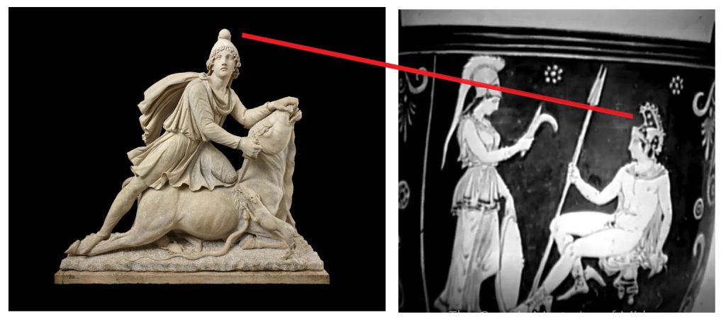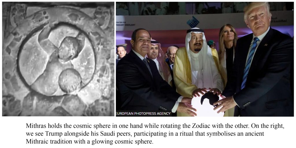 As Mithras kills the Bull, he is positioned above the Bull in the constellation star map. Above Taurus is Perseus, who carries a dagger and wears a Phrygian cap, much like Mithras. Perseus serves as both a constellation and a hero. This journey of the soul after death into the heavens mirrors the modern State Cults’ mission to attain immortality through the allure of space travel and technology. However, it is essential to recognise that this quest is more spiritual than something that can be achieved through material means.